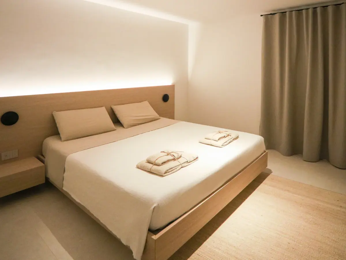 The open-plan living area, with floor-to-ceiling windows, invites you to soak in panoramic lake and garden views. The fully equipped kitchen is perfect for entertaining or intimate meals.