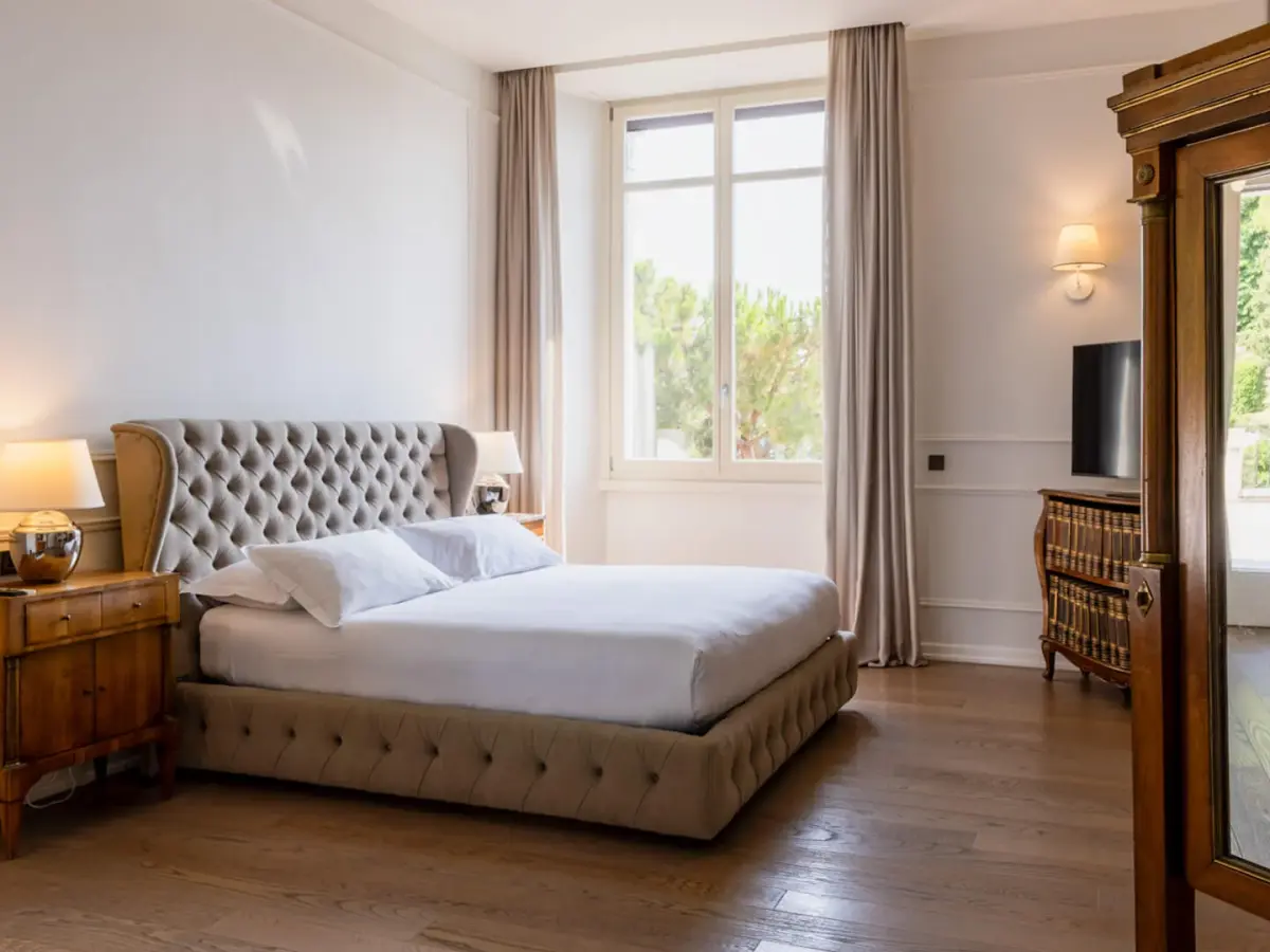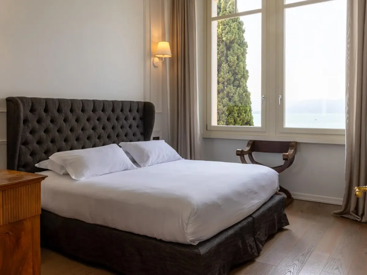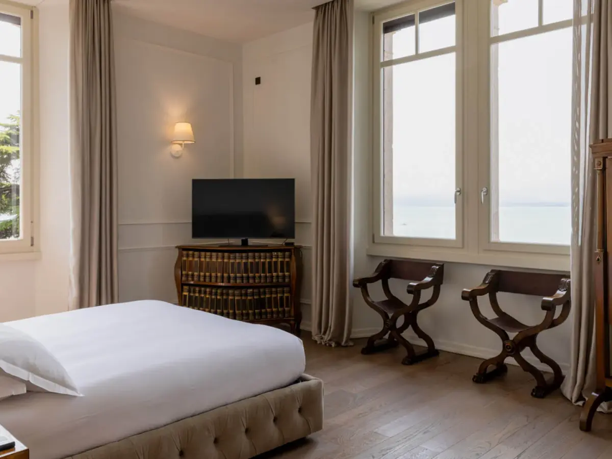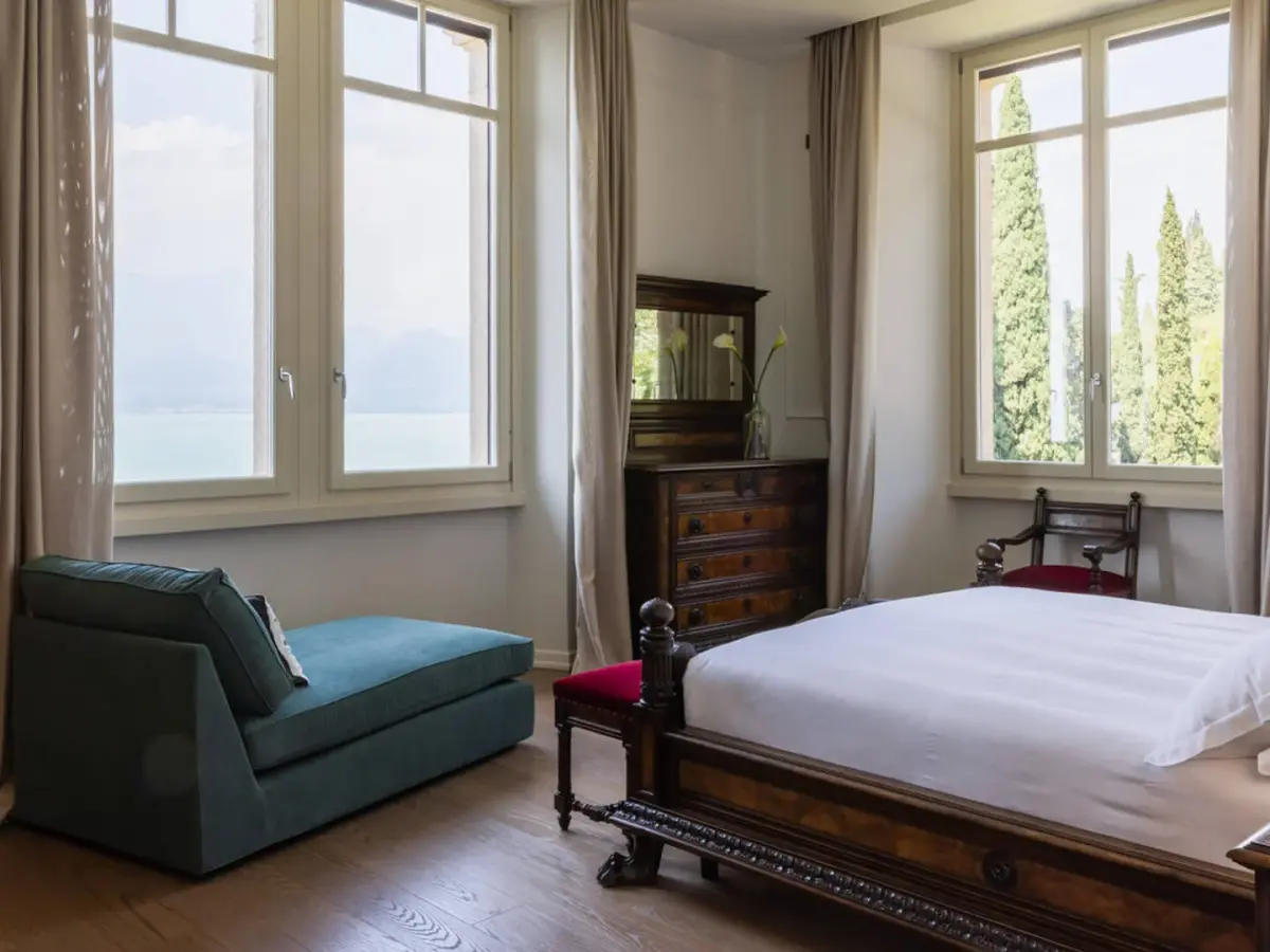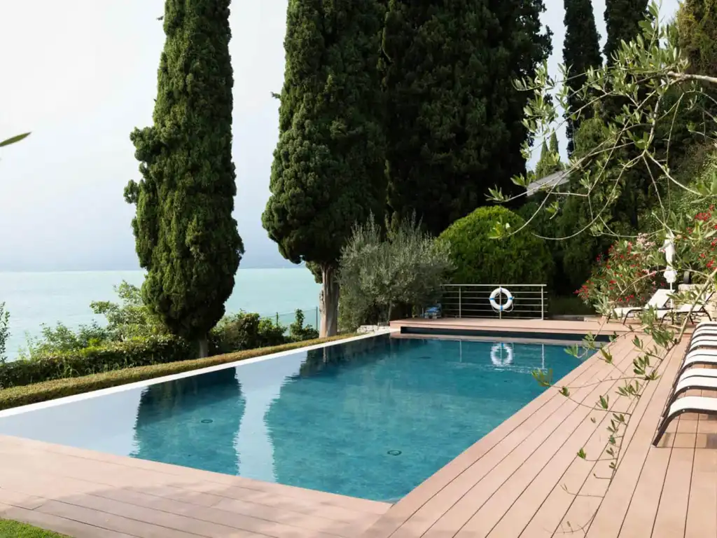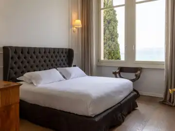 Villa Caratti, a historic gem on the shores of Lake Garda, offers an unparalleled blend of heritage and luxury. Built in the early 20th century by the English Barons Mildmay, this villa combines timeless charm with modern comforts. Accommodating up to sixteen guests across eight spacious bedrooms, four of which boast stunning lake views, Villa Caratti is designed for privacy and memorable gatherings. The grand living room features a majestic piano and a cozy fireplace, flowing seamlessly into a kitchen and dining area perfect for intimate or lavish meals. The lakefront terrace invites you to dine al fresco, soaking in spectacular sunsets over the water. Wellness is at the heart of this retreat, with a dedicated wellness center offering a sauna and Turkish bath. The villa also includes an indoor heated swimming pool, an outdoor pool overlooking the lake, a private gym, and a wine cellar for moments of relaxation and indulgence. Private lake access and a pier complete the experience, with optional services including a private chef and massage therapist.