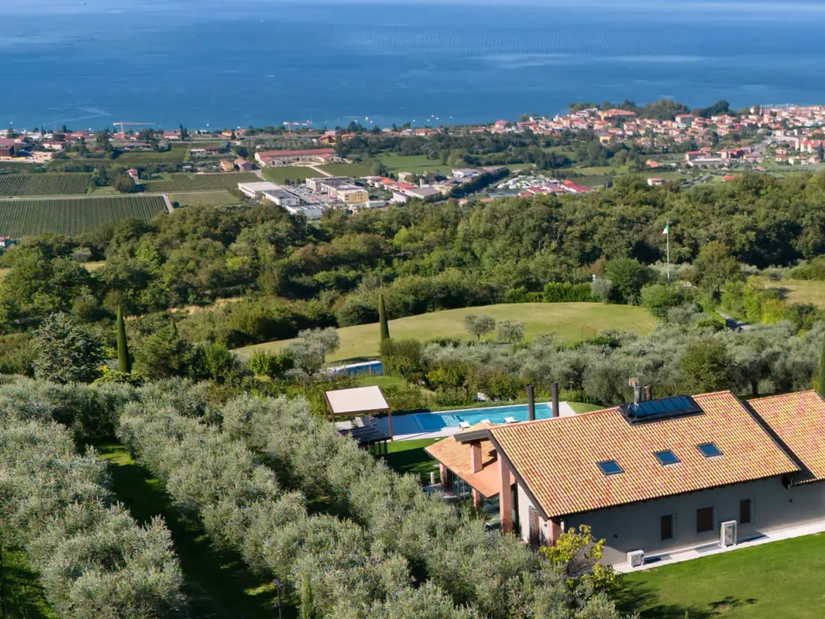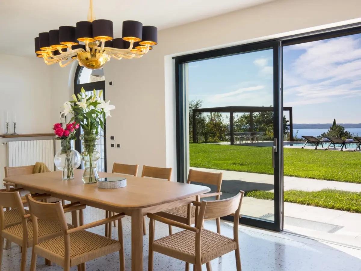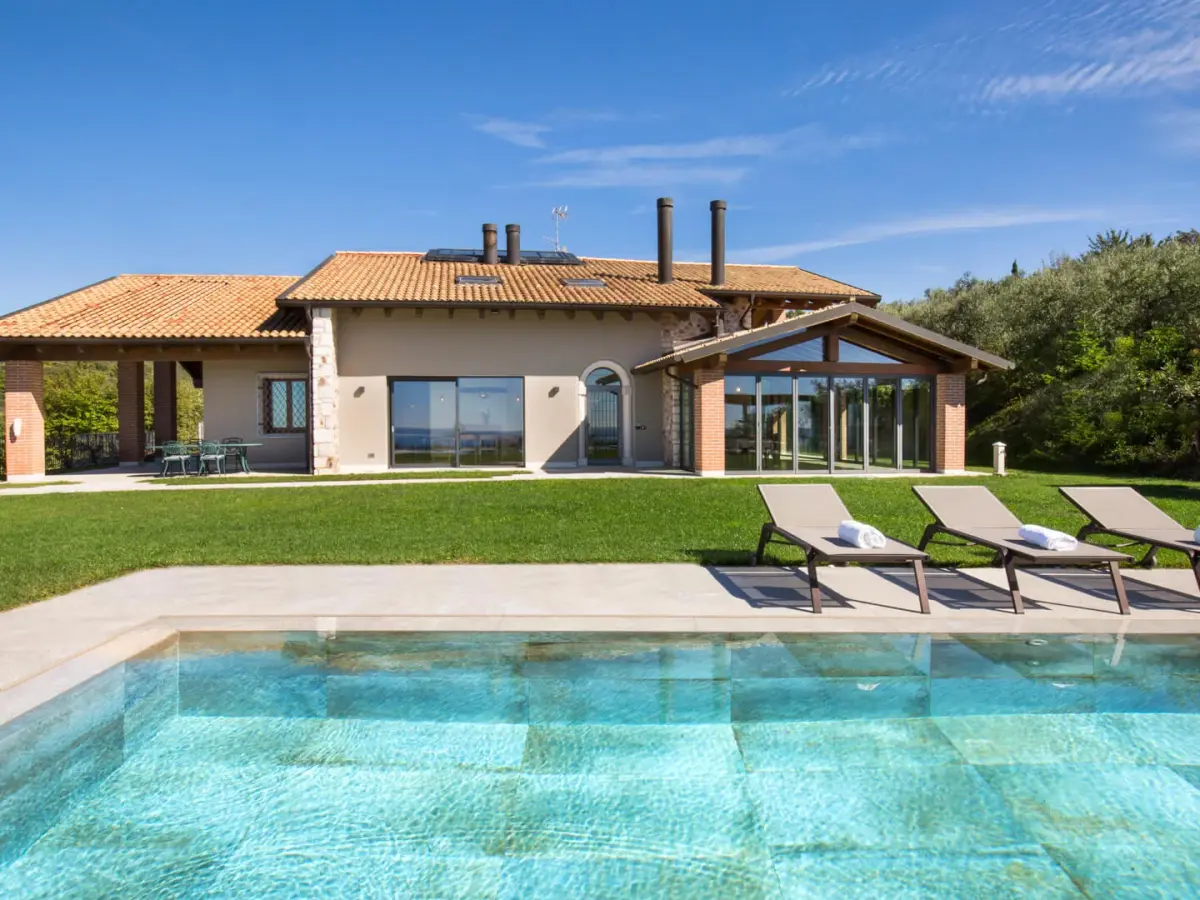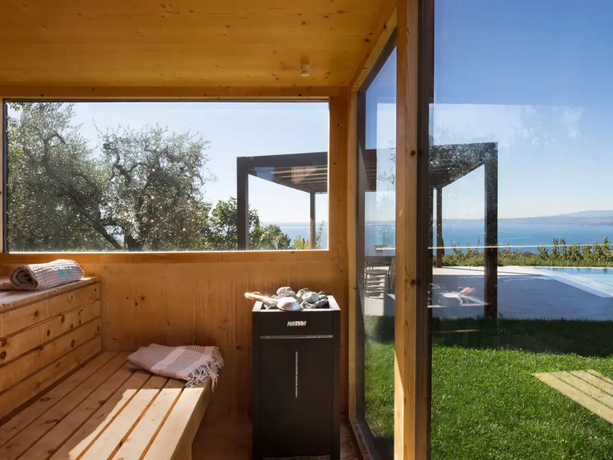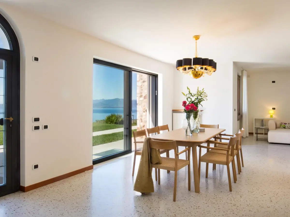 Perched on the hills above Bardolino, this private lakeview villa overlooks the shimmering expanse of Lake Garda with uninterrupted, panoramic views. Set within a quiet, prestigious enclave surrounded by nature, it offers rare privacy just minutes from Cavaion Veronese and the lakeside charm of Bardolino. Designed for effortless living, the home centres around a pool that appears to dissolve into the horizon, complete with its own private bathroom. A panoramic outdoor sauna invites slow evenings under open skies, while floor-to-ceiling windows draw natural light deep into the interiors. An elegant open-plan layout connects the fully equipped kitchen, lake-facing dining area, and a generous living room anchored by an oversized sofa. Outside, a covered veranda sets the scene for long alfresco meals and sunset views. Four double bedrooms share two contemporary bathrooms. A private garage and barbecue area complete this refined Lake Garda retreat.