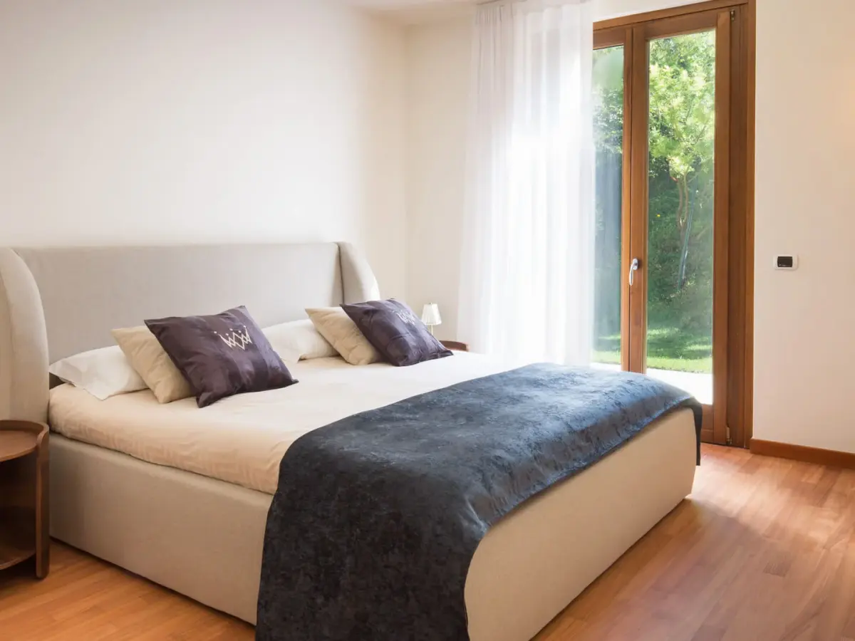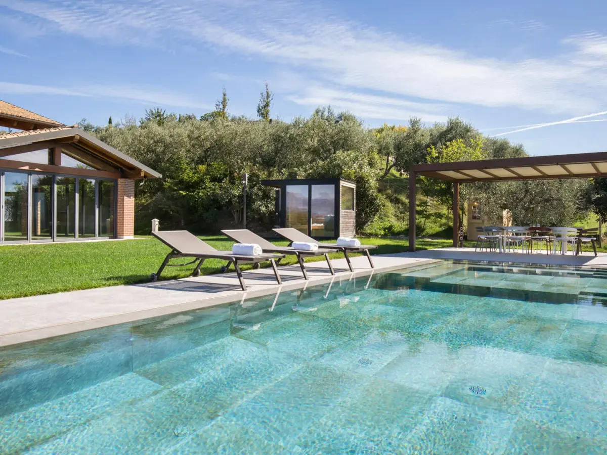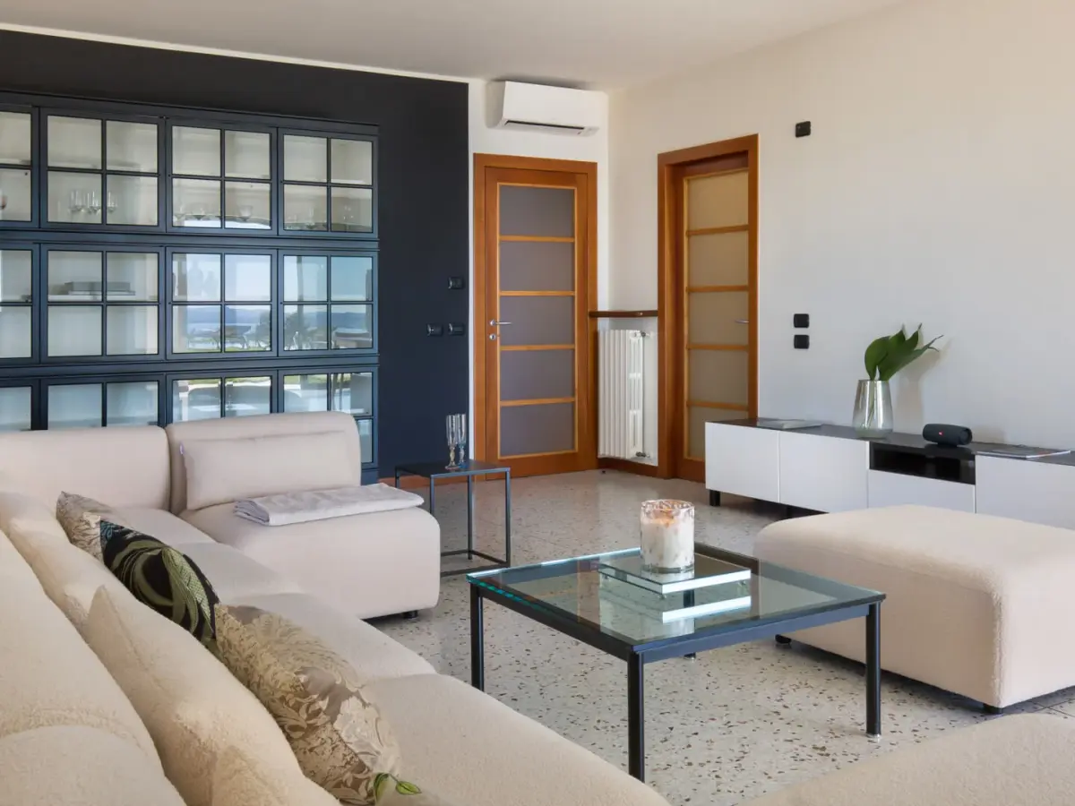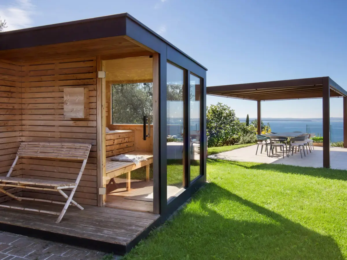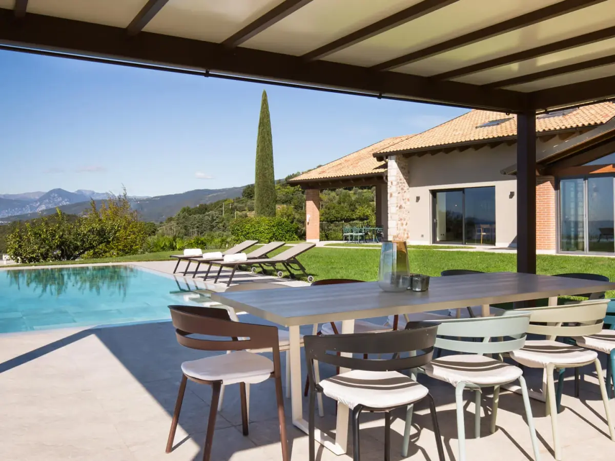 Perched on the hills above Bardolino, this private lakeview villa overlooks the shimmering expanse of Lake Garda with uninterrupted, panoramic views. Set within a quiet, prestigious enclave surrounded by nature, it offers rare privacy just minutes from Cavaion Veronese and the lakeside charm of Bardolino. Designed for effortless living, the home centres around a pool that appears to dissolve into the horizon, complete with its own private bathroom. A panoramic outdoor sauna invites slow evenings under open skies, while floor-to-ceiling windows draw natural light deep into the interiors. An elegant open-plan layout connects the fully equipped kitchen, lake-facing dining area, and a generous living room anchored by an oversized sofa. Outside, a covered veranda sets the scene for long alfresco meals and sunset views. Four double bedrooms share two contemporary bathrooms. A private garage and barbecue area complete this refined Lake Garda retreat.