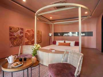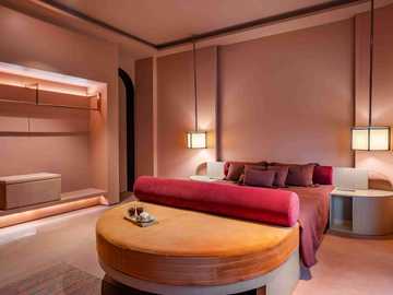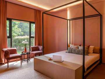Embark on a spiritual journey at Casa Del. Tucked away amid swaying palms in Alibaug, the villa is an invitation to think deeply. Architect Pinakin Patel uses clean lines and soft curves to craft contemplative spaces that let you breathe. The five ensuite bedrooms are minimally decorated with elegant pieces and statement artwork. The Dholpur red stone colours the entire villa in a shade that is both soothing and inspiring. Enjoy a meditative day as sunlight and birdsong bathe the villa, which by night transforms into a dynamic space brought alive by the evening lights.
