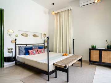 Here, at Siena Villa A, you are embraced by the rustling of leaves, the melodious bird calls, the blooming flowers, and fluttering butterflies. Forget the stress of daily life as you sip cocktails by the loungers after a refreshing swim with your loved ones. The floor-to-ceiling glass walls and the arched doorway open up the home, allowing ample light to flood in and fostering a deep connection with nature. Siena Villa A boasts three exquisite bedrooms, each with its own unique character, adorned with vintage interiors and a soothing colour palette.