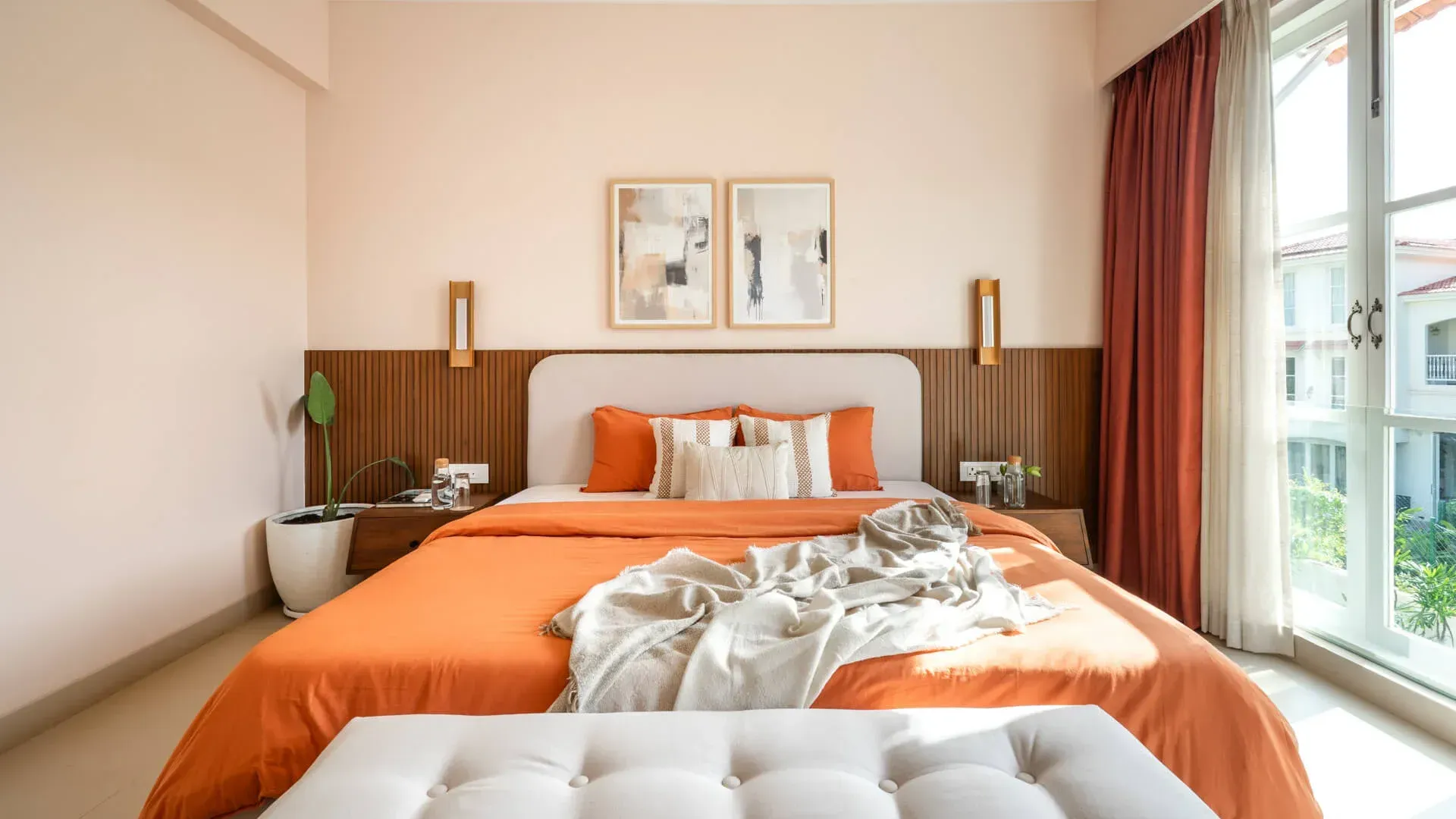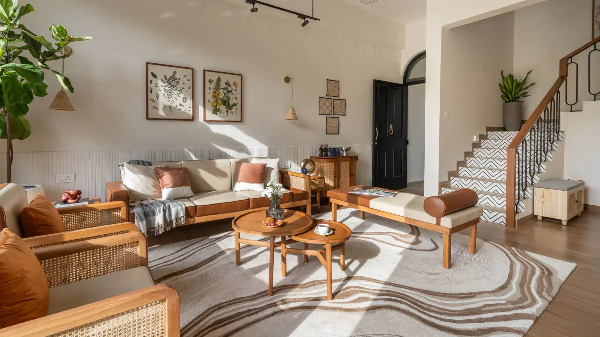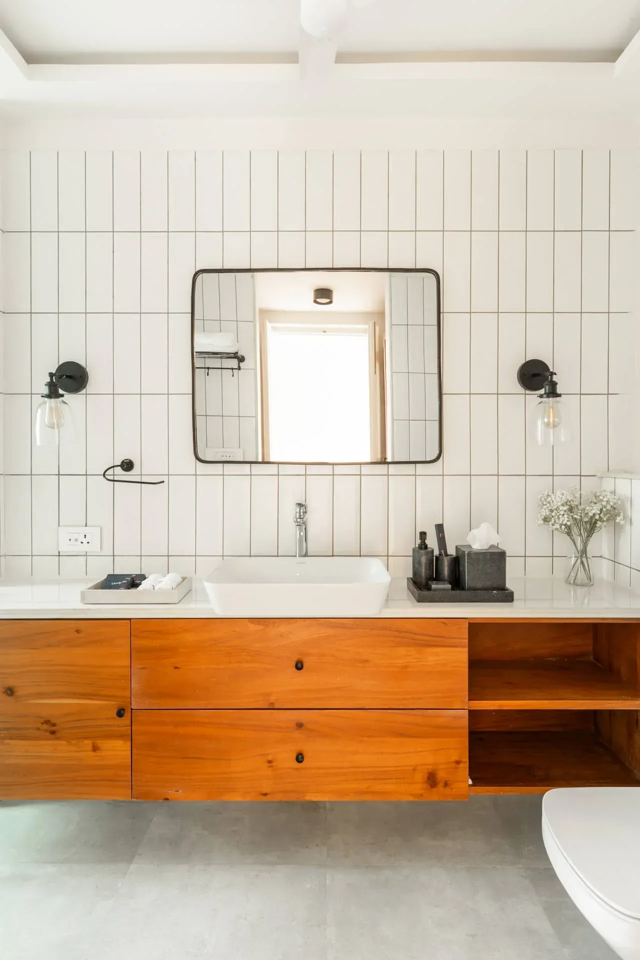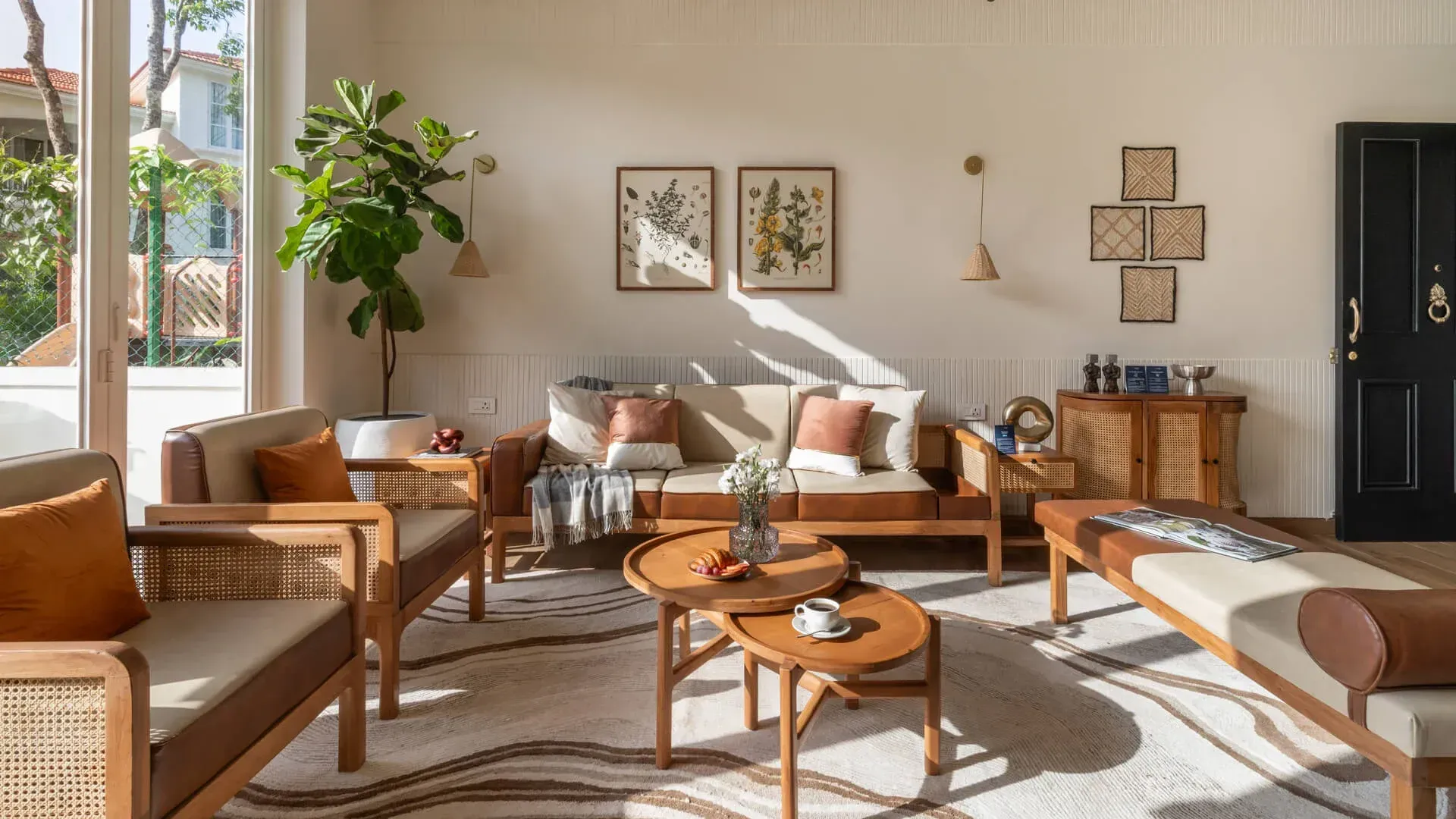 Chicly designed in soothing tones of white and beige, Aurelia Villa D is an oasis of calm and an excellent choice for a beach villa in Goa. Drawing inspiration from the concept of ‘Vaddo,’ this three-bedroom property fosters community living, sustainability, and social connection. The living and dining areas are enhanced with beautifully arched doors that let in plenty of natural light. The floors are laid with intricate tilework, creating an aesthetic and comfortable space for your getaway to Goa.