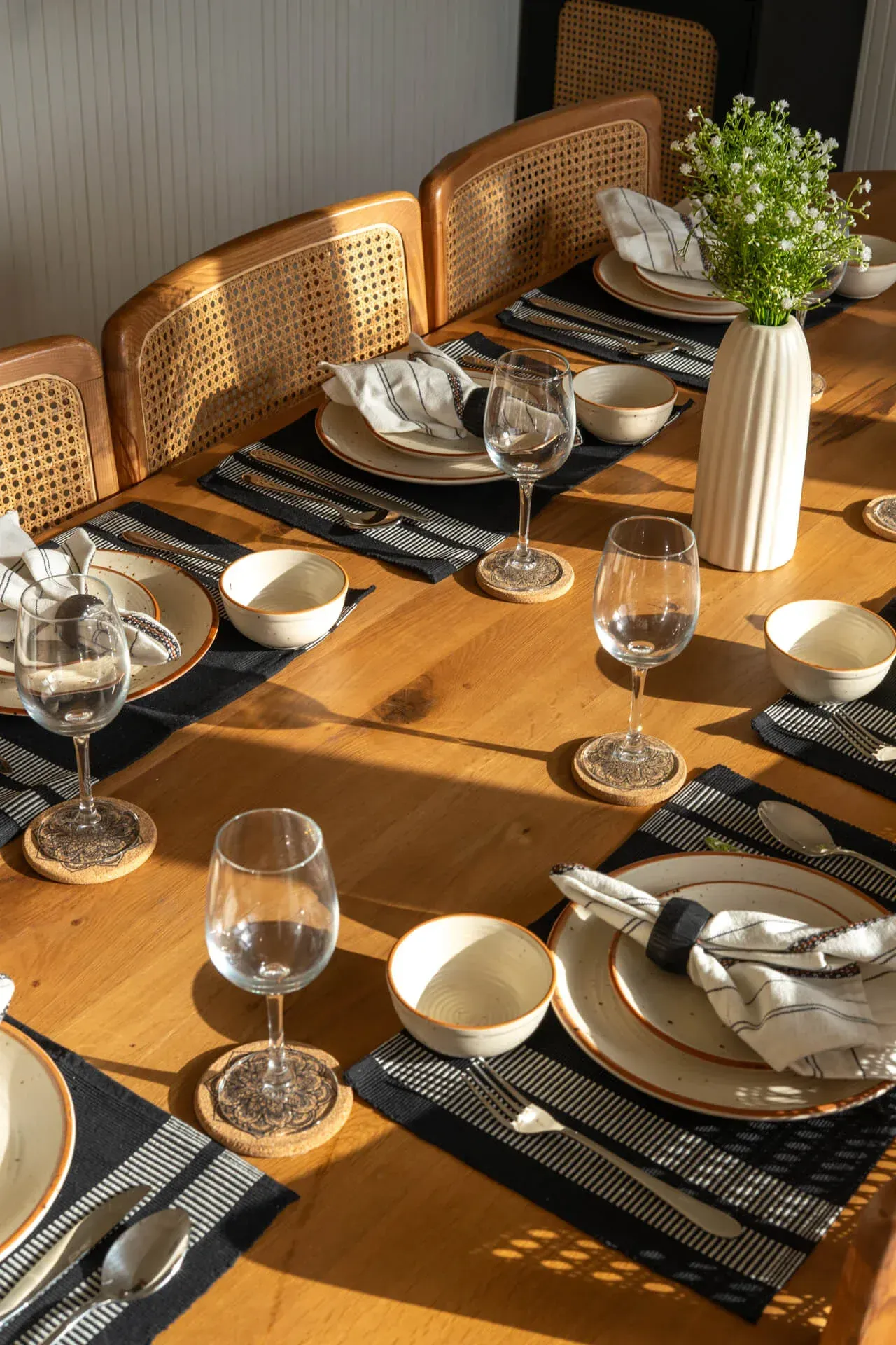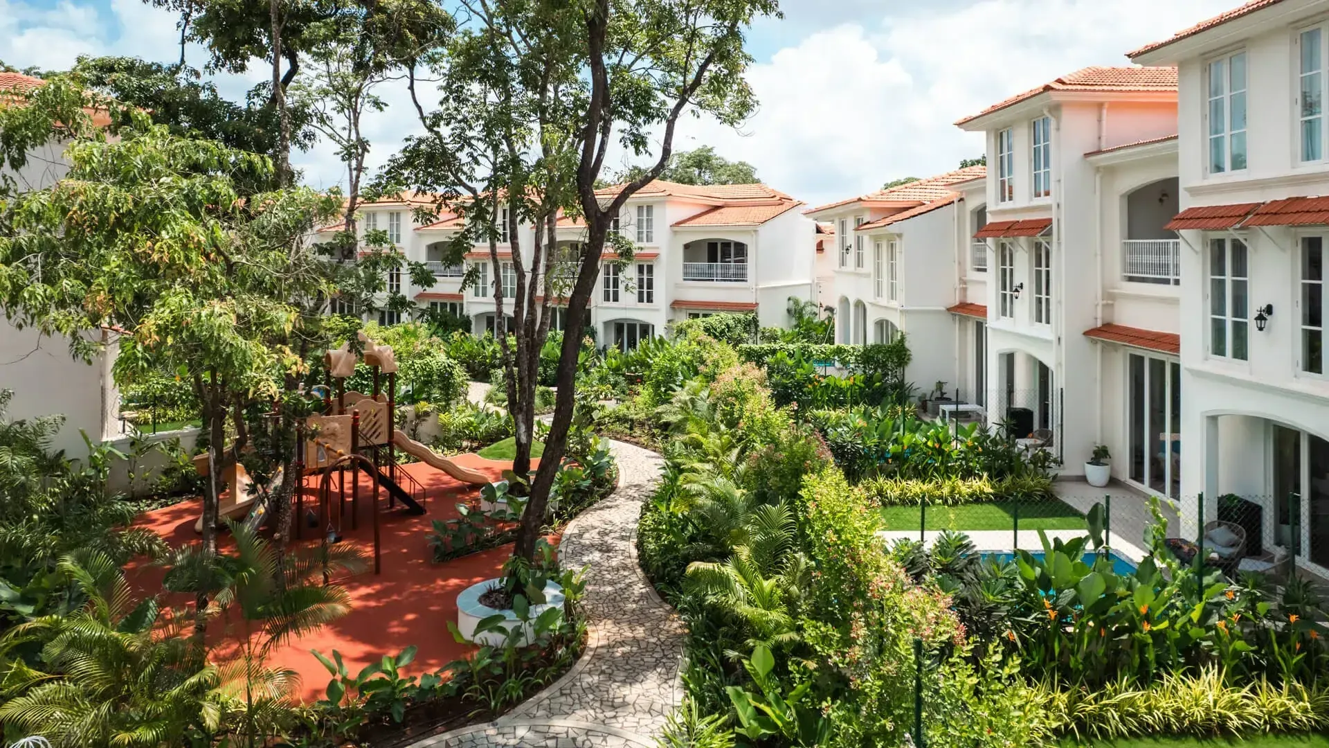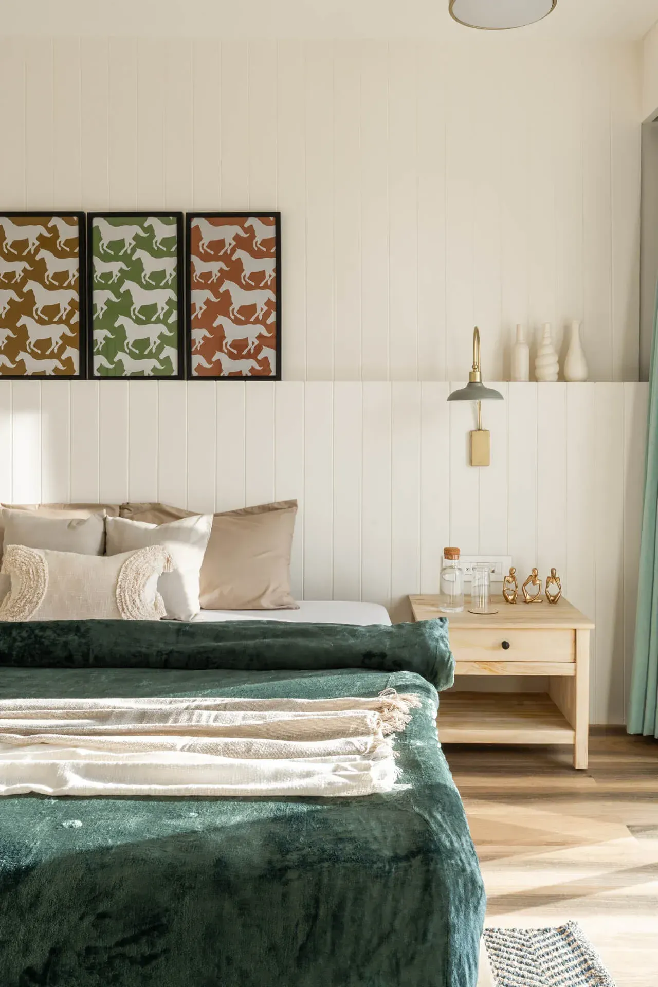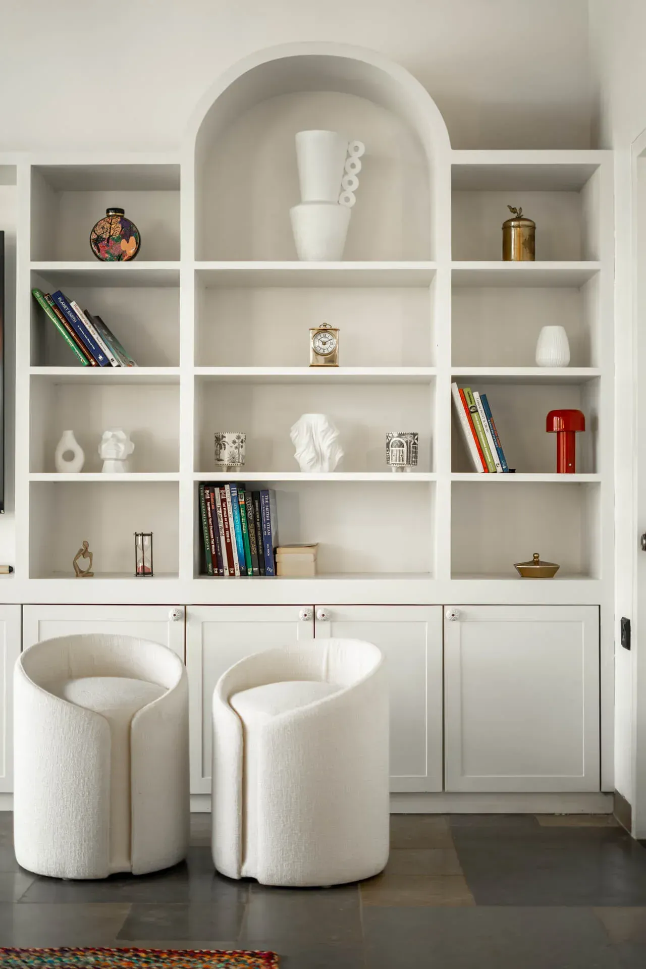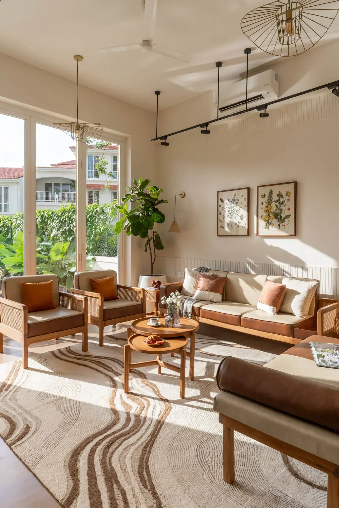 Chicly designed in soothing tones of white and beige, Aurelia Villa D is an oasis of calm and an excellent choice for a beach villa in Goa. Drawing inspiration from the concept of ‘Vaddo,’ this three-bedroom property fosters community living, sustainability, and social connection. The living and dining areas are enhanced with beautifully arched doors that let in plenty of natural light. The floors are laid with intricate tilework, creating an aesthetic and comfortable space for your getaway to Goa.