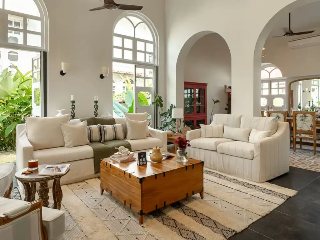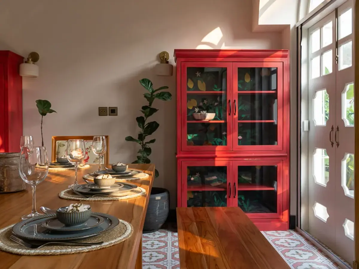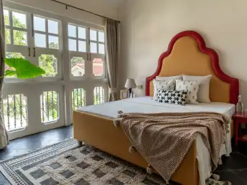 Tucked away in the serene beauty of Siolim, Calisto Villa D is a stunning 3-bedroom retreat by Isprava that offers the perfect escape from city life. Designed with a seamless blend of contemporary Mediterranean style and subtle bohemian influences, the villa radiates tranquility. Red accents and floral details add warmth, while arched windows that open up to the green surroundings create an inviting space ideal for families or small groups seeking a peaceful getaway in Goa.