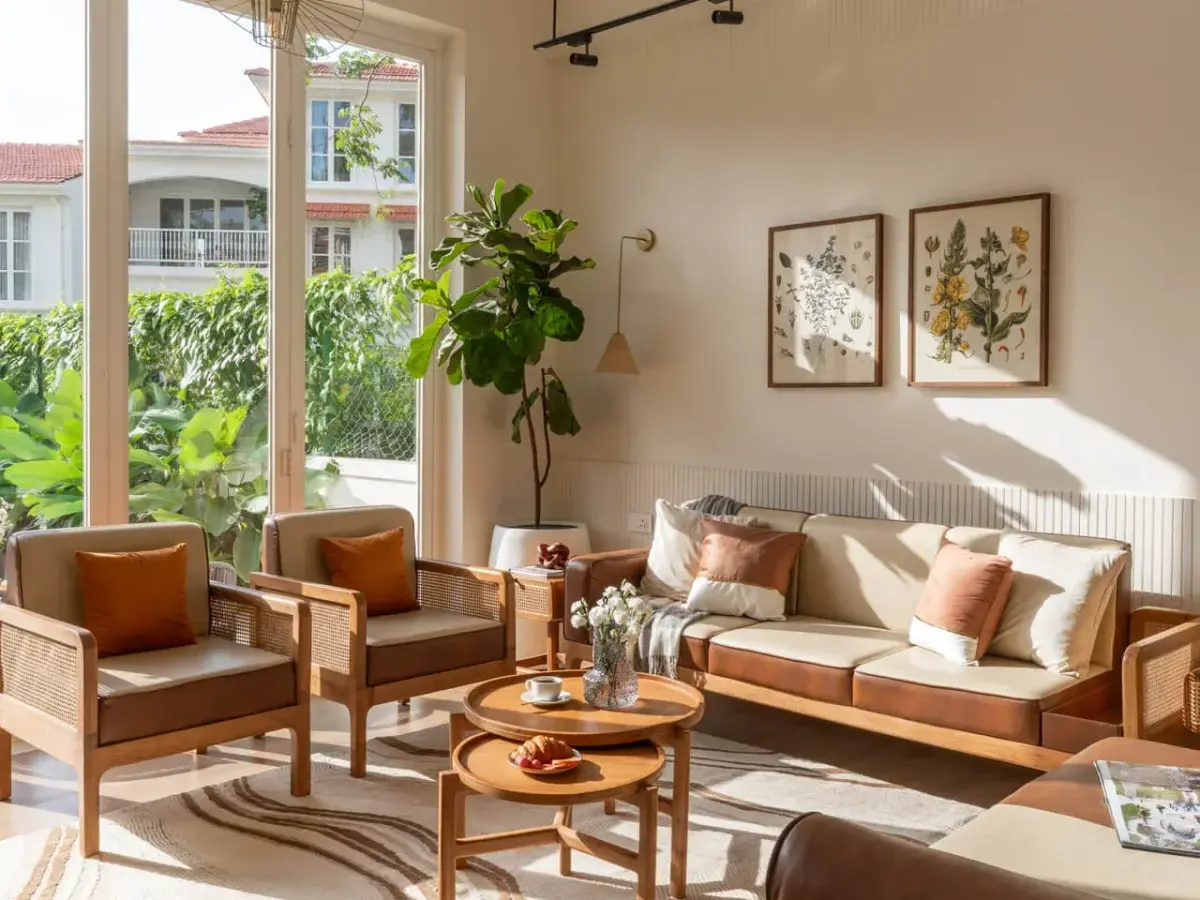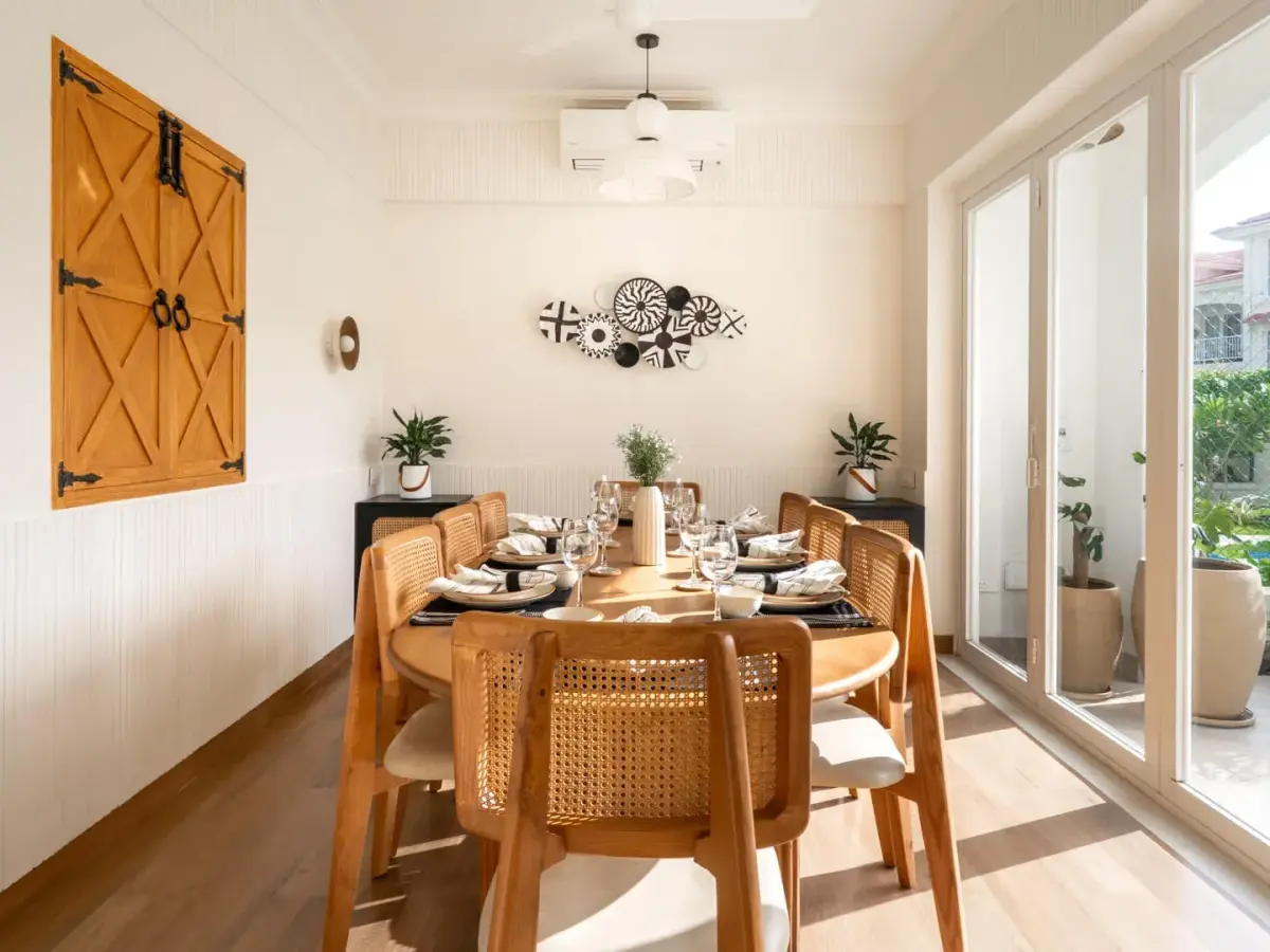 This villa features expansive windows that seamlessly blend the indoors with the outdoors, complemented by modern architecture and wooden accents that create a welcoming atmosphere. Gather in the living area, enjoy in-house games, or unwind by the private pool.