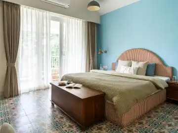 This villa features large windows that invite the outdoors in, perfectly complemented by its modern design and light blue accents, creating a serene and inviting atmosphere. Spend your days in the spacious living area, enjoy a variety of in-house games, or simply unwind by the private pool.