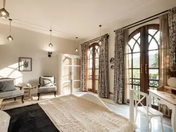 Set atop the hills of Mandrem, Sacri Borod Hill 6 is part of an exclusive villa community in Goa. Boasting majestic Mediterranean architecture and ethereal views of the surrounding vegetation, the villa is an idyllic getaway for large groups. Find a cosy corner in one of the 5 ensuite bedrooms or gather with your friends and family in the elegant living room. Enjoy a playful match in the games room or watch the sunset from one of the balcony sit-outs overlooking the Ashwem sea. Dip in the private pool or take a stroll in the luscious green gardens.